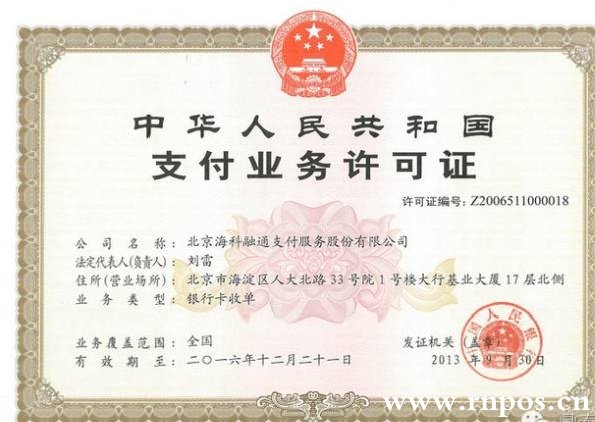2、支付通Qpos為國內真正具有支付牌照的北京海科融通支付服務股份有限公司開發運營。