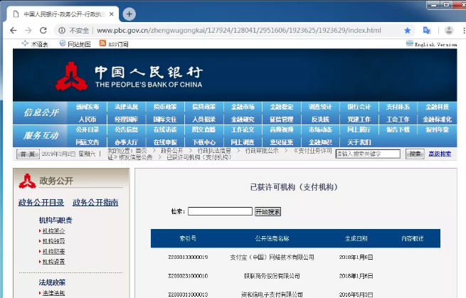 央行官網(wǎng)(左下角)---->行政執(zhí)法信息---->行政審批公示---->已獲許可機(jī)構(gòu) 即可查詢: